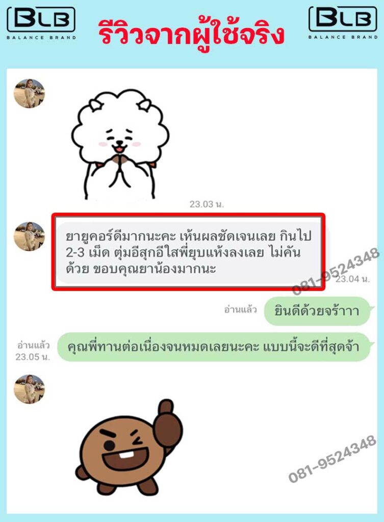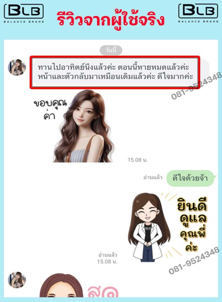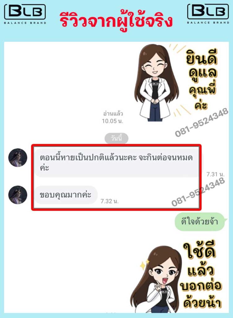 ตอนแรกยอมรับว่าไม่เชื่อค่ะ แต่ก็อดคิดไม่ได้ว่า ถ้ายังรักษาแบบเดิม คงอีกนานกว่าจะหาย แอนจึงหาข้อมูล BLB U ทาง Google เพิ่ม และได้พบว่ามีรีวิวผู้ที่ทานแล้วอาการดีขึ้นเร็วเยอะมาก รวมถึงมีหมายเลข อย. และฮาลาลด้วย