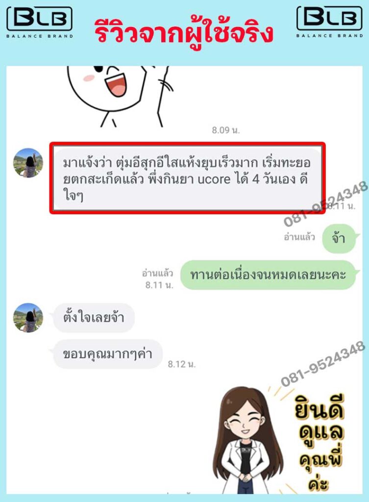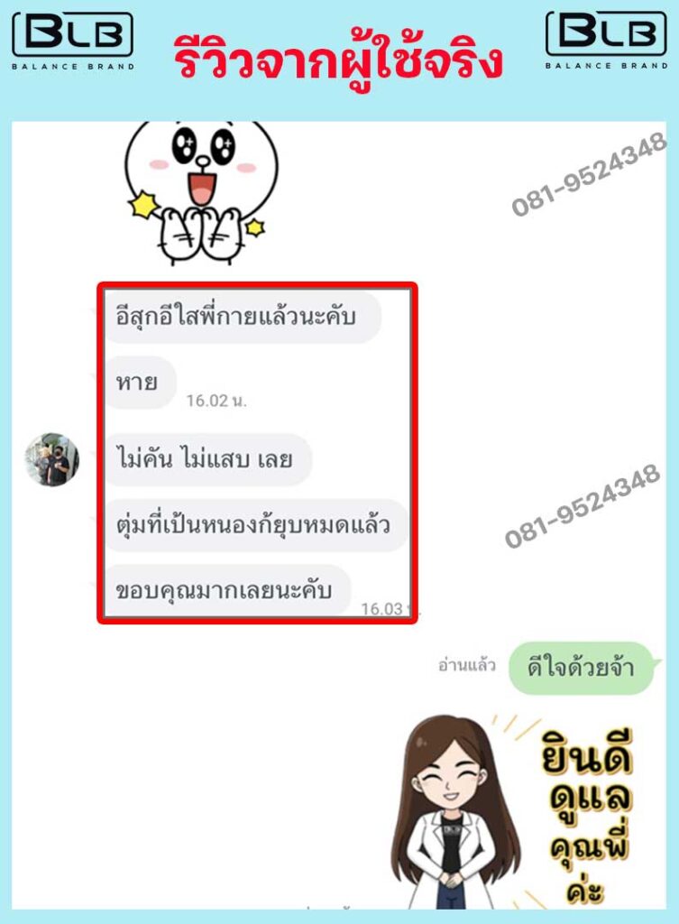 เพื่อนๆ พี่ๆ ท่านใด ที่กำลังเป็นอีสุกอีใสอยู่ แอนแนะนำ BLB U เลยนะคะ ไม่ต้องลองผิดลองถูกให้เสียเงินเสียเวลา บอกเลยว่าไม่ผิดหวังแน่นอน หลานป้าแม่บ้านและแอน ขอเป็นตัวอย่างให้ (เลื่อนลงด้านล่าง เพื่อดูรีวิวเพิ่มได้) ขอเป็นกำลังใจให้นะคะ ลองปรึกษาเจ้าหน้าที่ผู้เชี่ยวชาญดูนะคะ