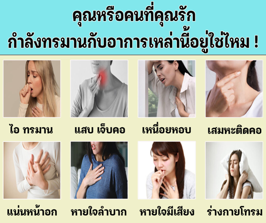 เพื่อนๆ พี่ๆ กำลังมีอาการเหล่านี้อยู่ใช่ไหมคะ ไอ ไอมาก มีเสมหะ เจ็บคอ เสียงแหบ เหนื่อยหอบ เจ็บอก แน่นหน้าอก หายใจลำบาก หายใจไม่อิ่ม หายใจมีเสียง  เป็นต้น ถ้ากำลังมีอาการเหล่านี้อยู่ ลองอ่านเรื่องราวของแอนดูนะคะ