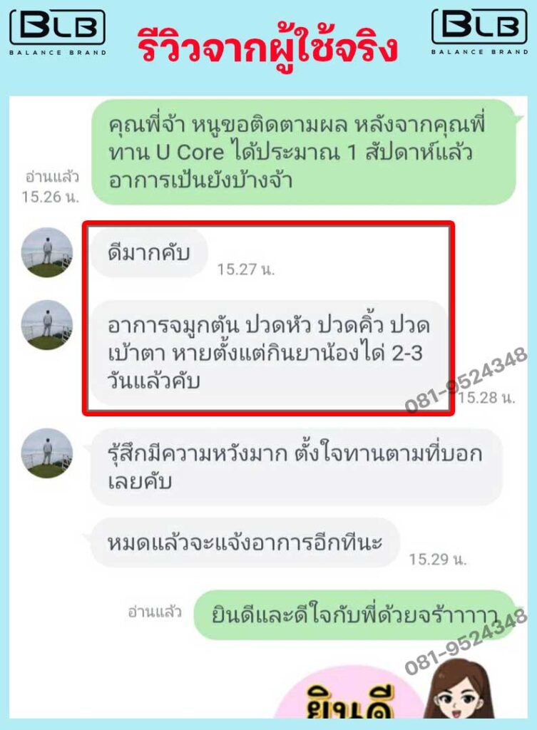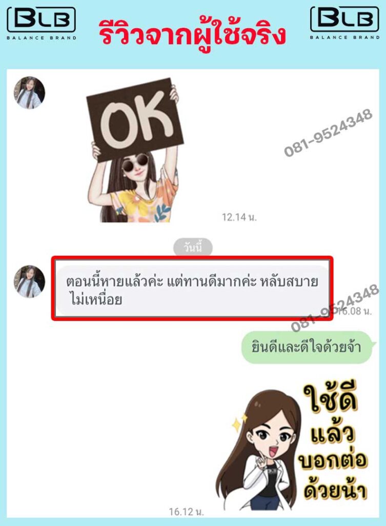 แอนจึงตั้งใจทานต่อเนื่องจนหมด ยอมรับว่าตะลึงกับผลลัพธ์เลยค่ะ ปัจจุบันแอนทานชุดที่สั่งมาตอนนั้นหมดได้ครึ่งปีแล้ว สังเกตุได้ว่า ตั้งแต่เริ่มทาน BLB U อาการก็ดีขึ้นเรื่อยๆ ตามลำดับ รู้สึกร่างกายสดชื่นดีมาก
