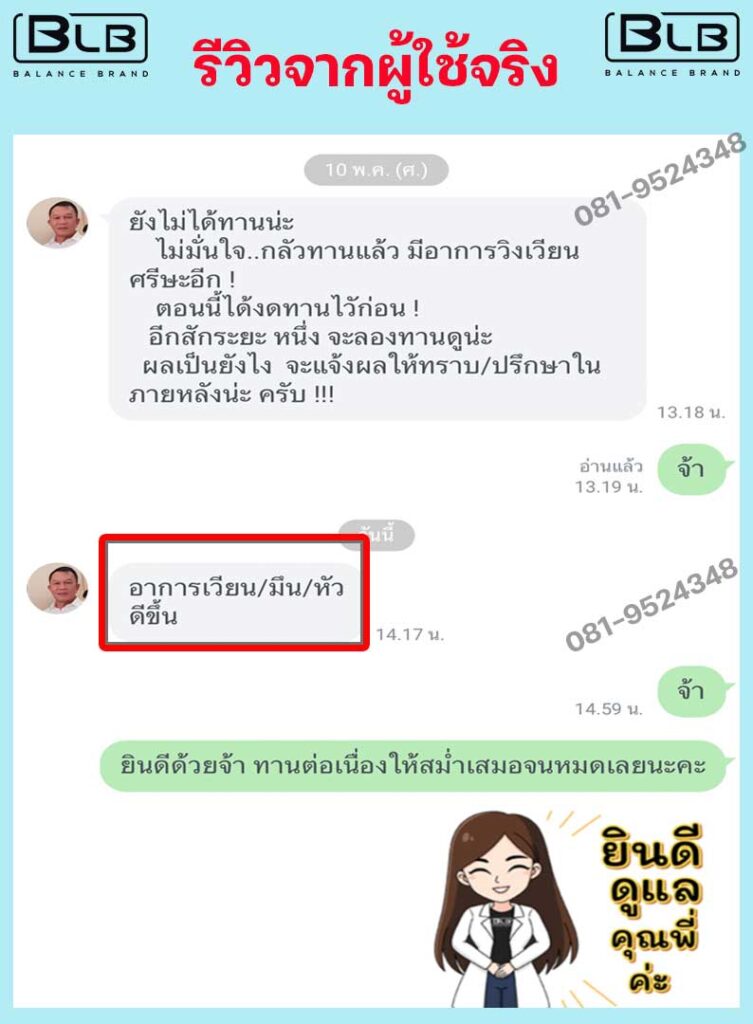เพื่อนๆ พี่ๆ ท่านใด ที่กำลังมีอาการบ้านหมุนอยู่ แอนแนะนำ BLB U เลยนะคะ ไม่ต้องลองผิดลองถูกให้เสียเงินเสียเวลา บอกเลยว่าไม่ผิดหวังแน่นอน ป้าแม่บ้านและแอน ขอเป็นตัวอย่างให้ (เลื่อนลงด้านล่าง เพื่อดูรีวิวเพิ่มได้) ขอเป็นกำลังใจให้ทุกคนนะคะ เป็นได้ก็หายได้จ้า