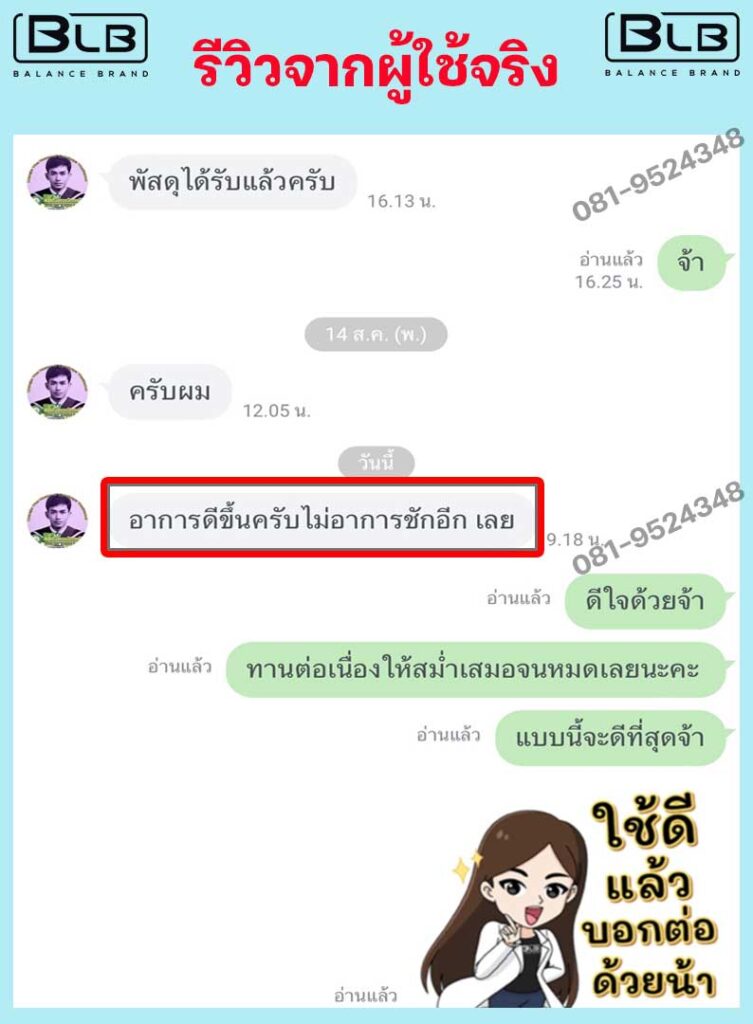 เพื่อนๆ พี่ๆ ท่านใด ที่มีอาการลมชักอยู่ แอนแนะนำ BLB U เลยนะคะ ไม่ต้องลองผิดลองถูก ให้เสียเงินเสียเวลา บอกเลยว่าไม่ผิดหวังแน่นอน ป้าแม่บ้านและแอน ขอเป็นตัวอย่างให้ (เลื่อนลงด้านล่าง เพื่อดูรีวิวเพิ่มได้) ขอเป็นกำลังใจให้ทุกคนนะคะ เป็นได้ก็หายได้จ้า