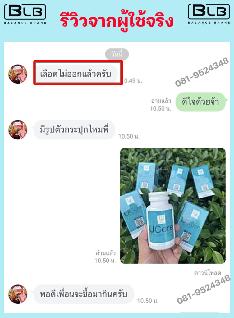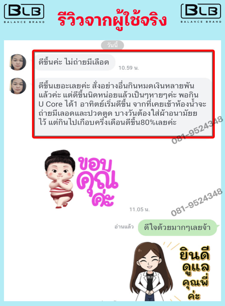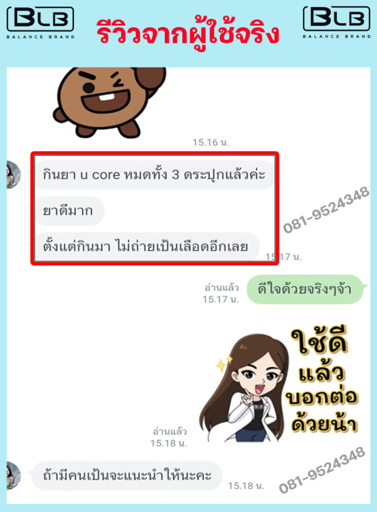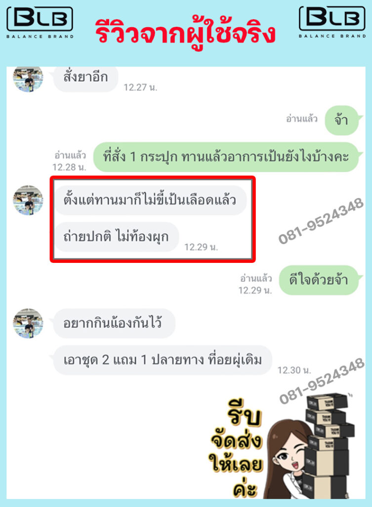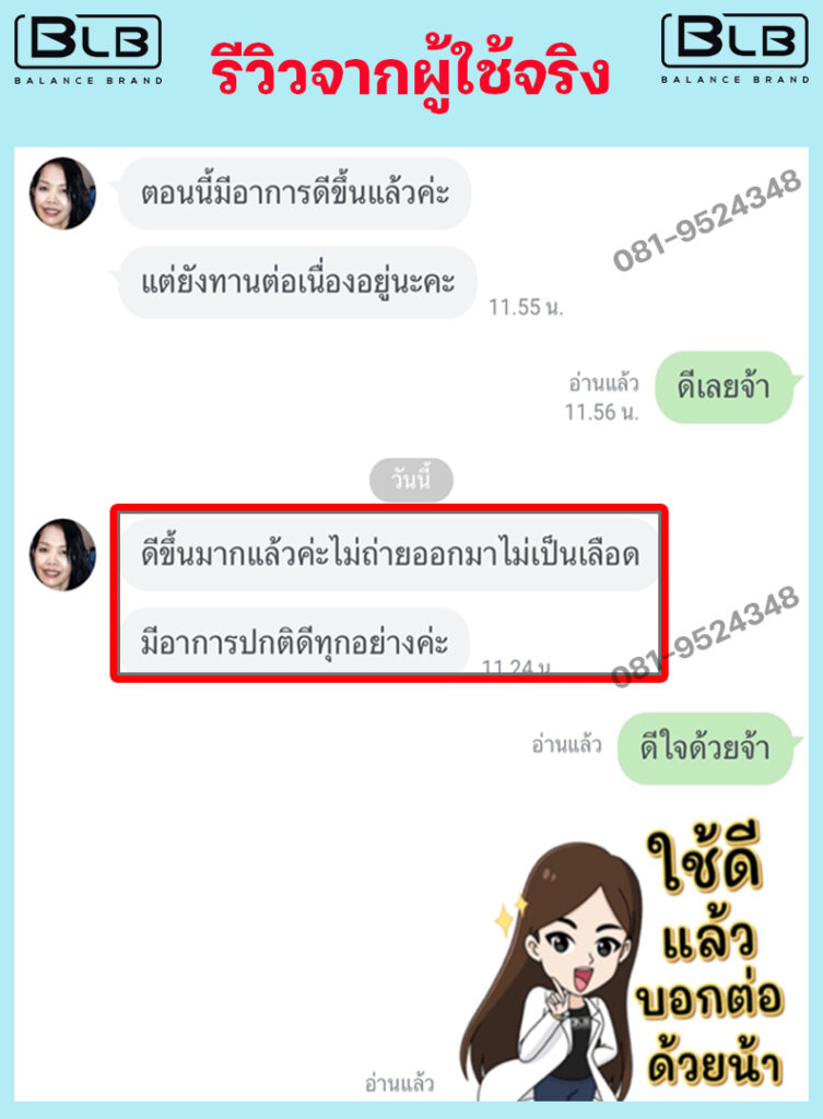 เพื่อนๆ พี่ๆ ท่านใด ที่กำลังมีอาการถ่ายเป็นเลือดอยู่ แอนแนะนำ BLB U เลยนะคะ ไม่ต้องลองผิดลองถูกให้เสียเงินเสียเวลา บอกเลยว่าไม่ผิดหวังแน่นอน ป้าแม่บ้านและแอน ขอเป็นตัวอย่างให้ (เลื่อนลงด้านล่าง เพื่อดูรีวิวเพิ่มได้) ขอเป็นกำลังใจให้ทุกท่านนะคะ เป็นได้ก็หายได้จ้า