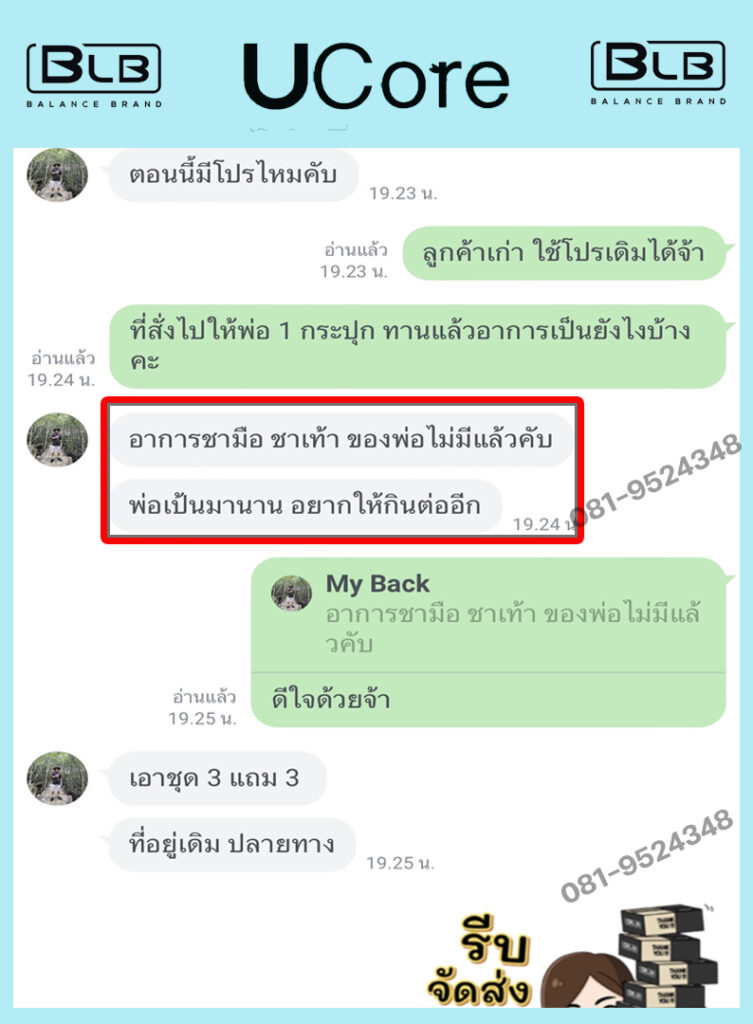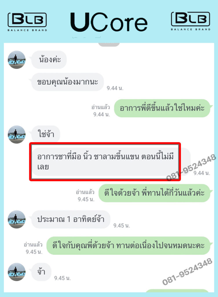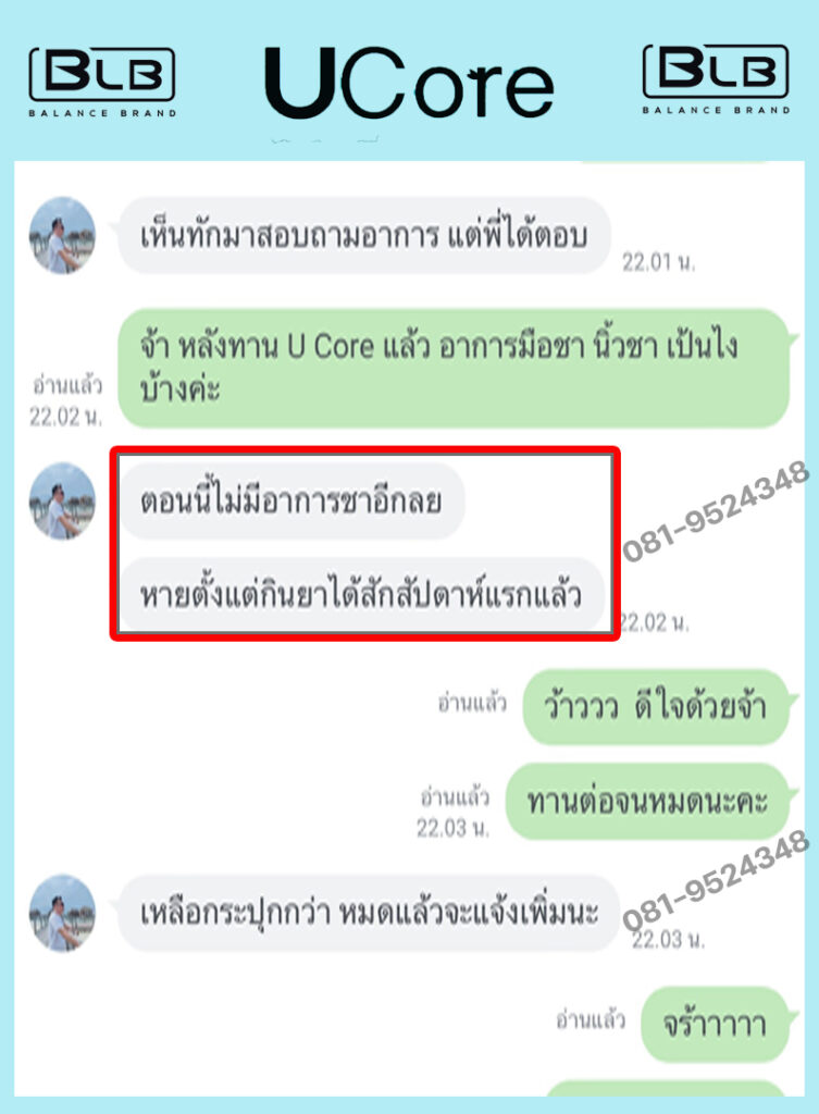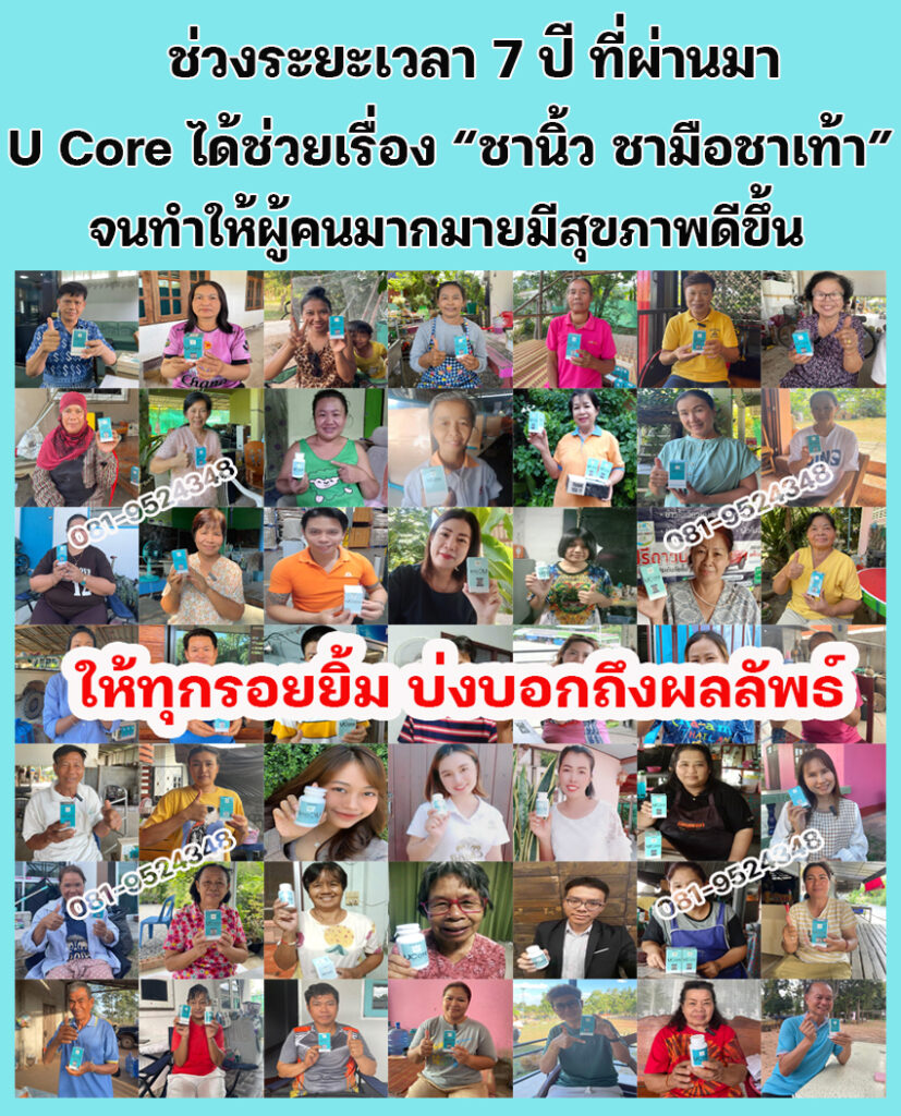 เพื่อนๆ พี่ๆ ท่านใดที่กำลังมีอาการชามือ ชาเท้าอยู่ ผมแนะนำ U Core เลยนะครับ บอกเลยว่าไม่ผิดหวังแน่นอน ป้าแม่บ้านและตัวผม ขอเป็นตัวอย่างให้ (เลื่อนลงด้านล่าง เพื่อดูรีวิวได้) ขอเป็นกำลังใจให้ทุกท่านนะครับ เป็นได้ก็หายได้ครับ