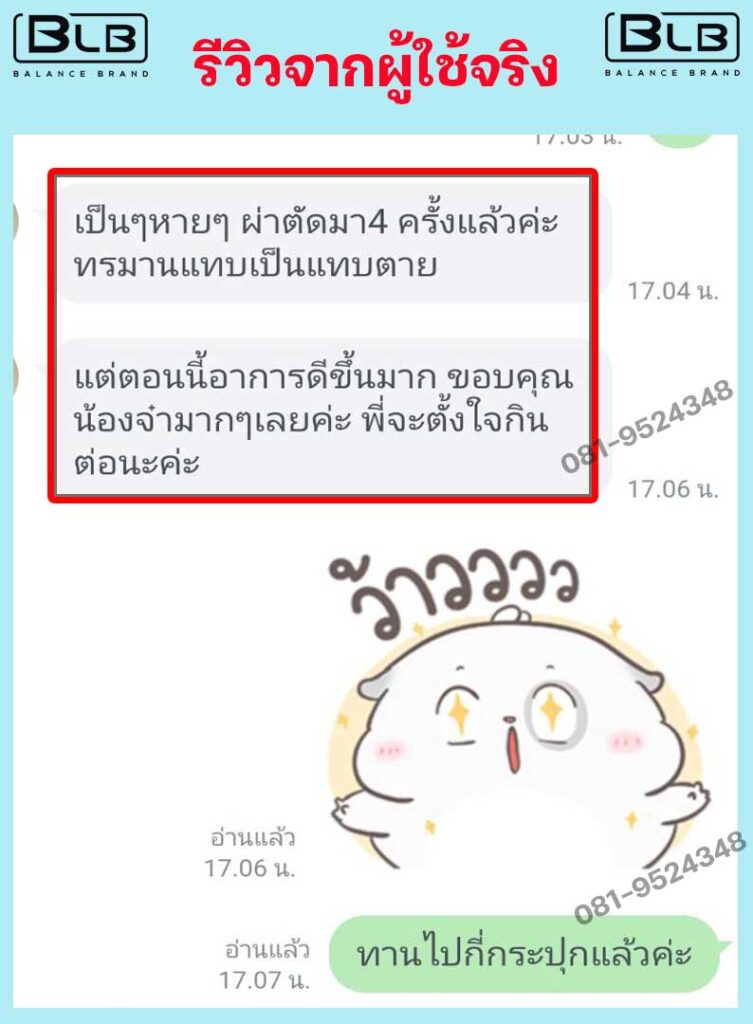 ตอนแรกยอมรับว่าไม่เชื่อครับ แต่ก็อดคิดไม่ได้ว่า ถ้ายังรักษาแบบเดิม ต้องได้ผ่าตัดแน่ๆ (ยังจำความเจ็บปวดตอนนั้นได้) ผมจึงหาข้อมูล BLB U ทาง Google เพิ่มและได้พบว่ามีรีวิวผู้ที่ทานแล้วอาการดีขึ้นเร็วเยอะมาก รวมถึงมีหมายเลข อย. และฮาลาลด้วย