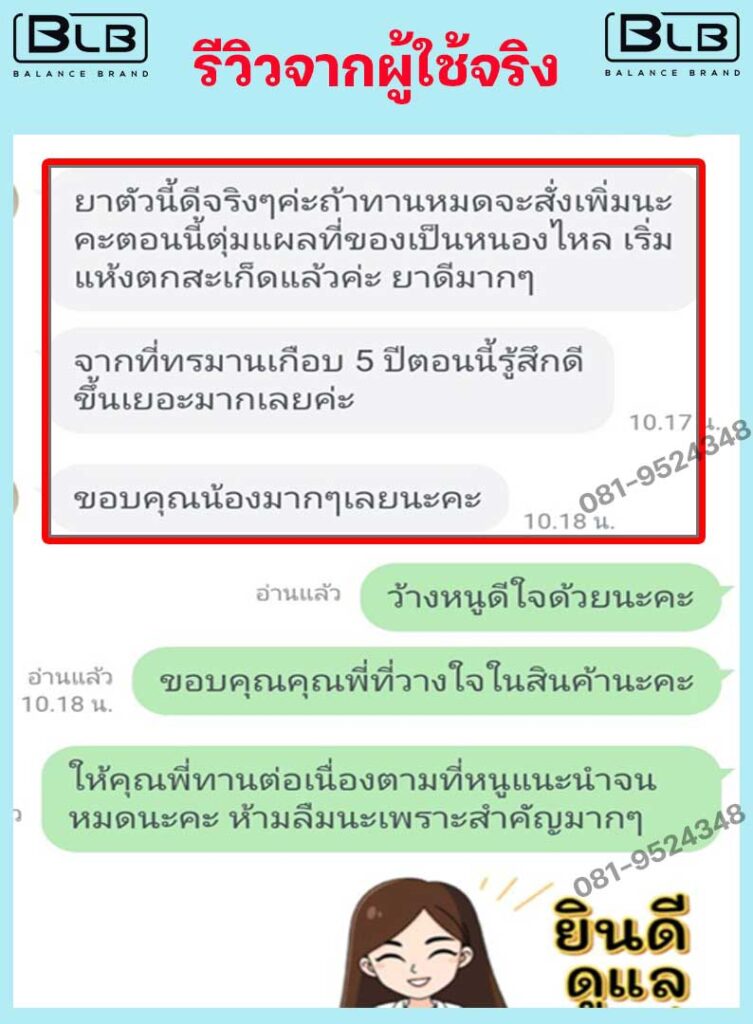 ผมจึงตั้งใจทานต่อเนื่องจนหมด ยอมรับว่าตะลึงกับผลลัพธ์เลยครับ ปัจจุบันผมทานชุดที่สั่งมาหมดได้เกือบปีแล้ว สังเกตุได้ว่าตั้งแต่เริ่มทาน BLB U อาการก็ดีขึ้นเรื่อยๆ ตามลำดับ รู้สึกร่างกายสดชื่นดีมาก