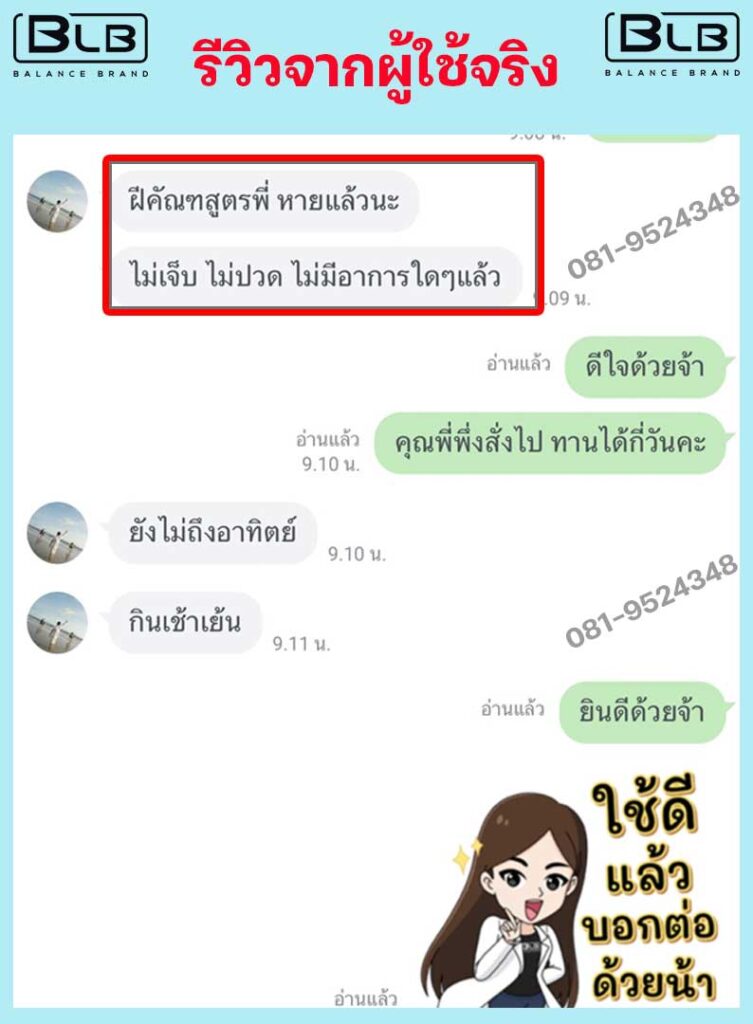เพื่อนๆ พี่ๆ ท่านใด ที่กำลังเป็นฝีคัณฑสูตรอยู่ ผมแนะนำ BLB U เลยนะครับ ไม่ต้องลองผิดลองถูก ให้เสียเงินเสียเวลา บอกเลยว่าไม่ผิดหวังแน่นอน ป้าแม่บ้านและตัวผมเอง ขอเป็นตัวอย่างให้ (เลื่อนลงด้านล่าง เพื่อดูรีวิวเพิ่มได้) เป็นกำลังใจให้ทุกท่านนะครับ เป็นได้ก็หายได้ครับ