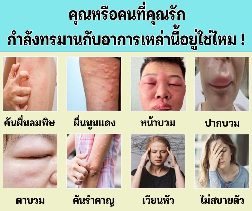 เพื่อนๆ พี่ๆ กำลังมีอาการเหล่านี้อยู่ใช่ไหมคะ เช่น เป็นผื่น ผื่นนูนเป็นปื้น คันทรมาน เกาจนเป็นแผล หน้า-ปาก-ตาบวม กลืนน้ำลายยาก แน่นหน้าอก เป็นต้น ถ้ากำลังมีอาการเหล่านี้อยู่ ลองอ่านเรื่องราวของแอนดูนะคะ